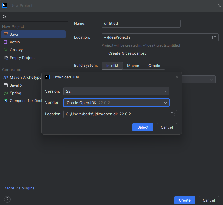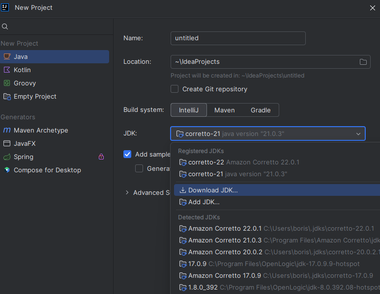 - create a project with the JDK needed and use the download jdk button to obtain the required JDK.