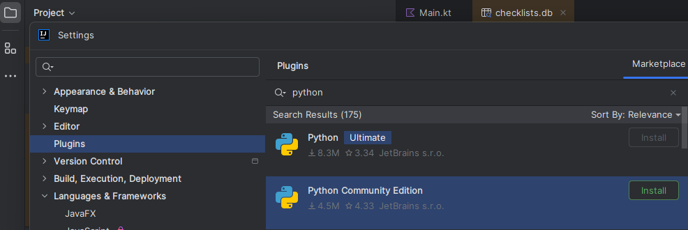 - Install plugin from MarketPlace to be able to work with Python projects in Intellij