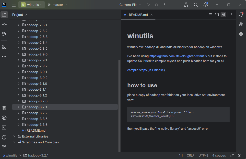- clone repository https://github.com/cdarlint/winutils.git